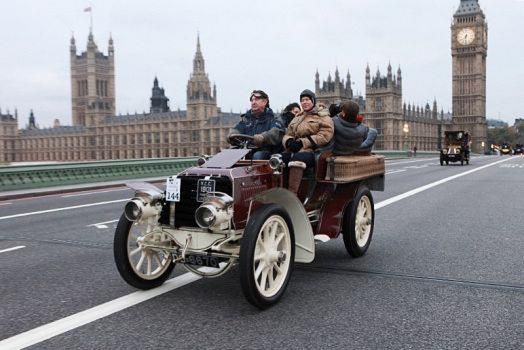 Pink Floyd drummer Nick Mason has been a regular on the Veteran Car Run since he first took part in 1985. He is often joined by members of the Franchitti family – his daughter Holly is married to racing driver Marino Franchitti. Here is Nick crossing Westminster Bridge aboard his 1901 Panhard Et Levassor. He bought this splendid machine, which has magnificent Roi-Des-Belges coachwork, specifically to use on the Run.