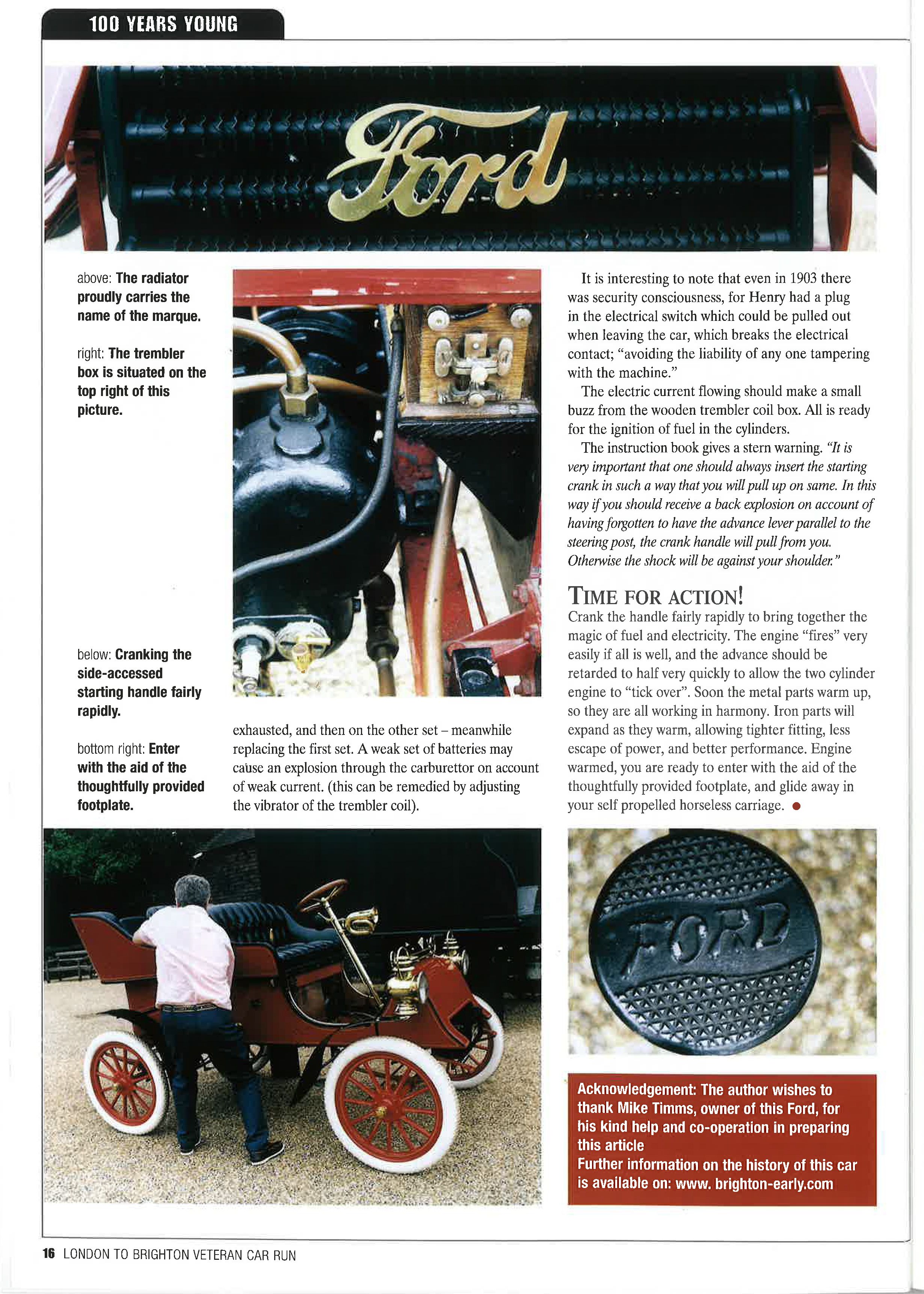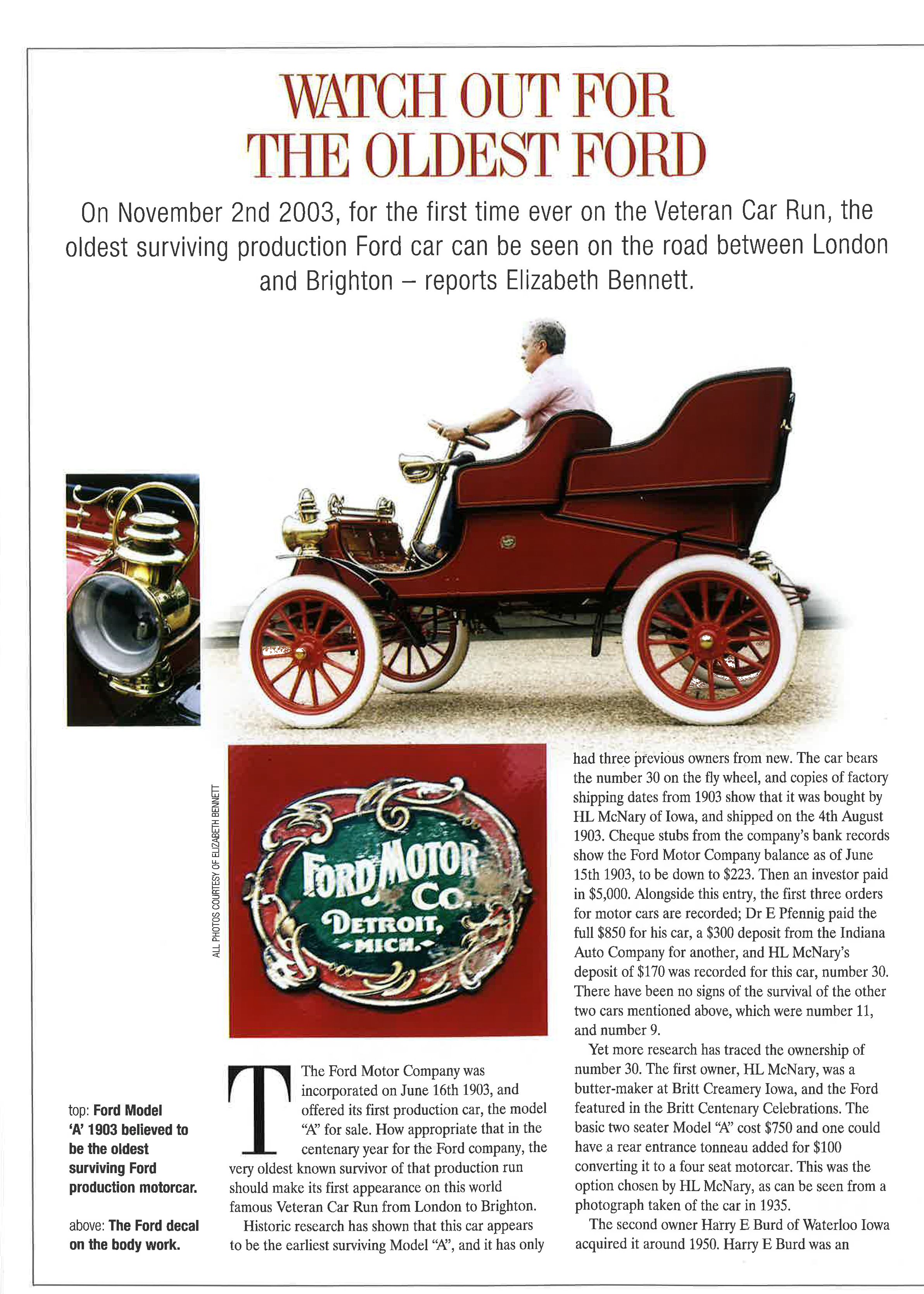 On the car's centenary in 2003, in the hands of its then owner, Mike Timms, chassis #30 took part in the London to Brighton Veteran Car Run, and its story was told in the event programme for that year - see below or download the PDF here.