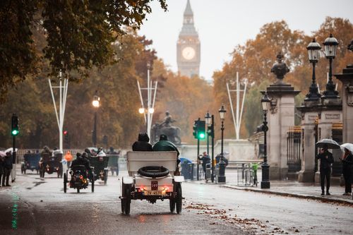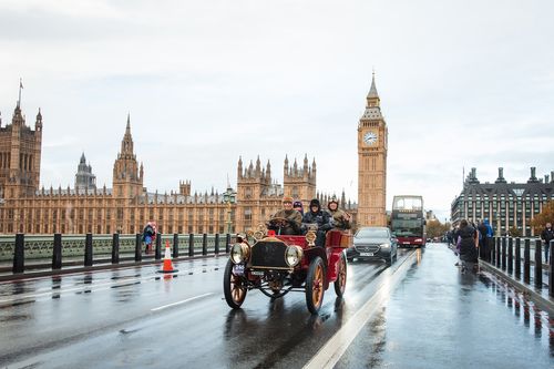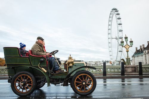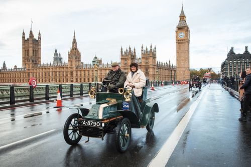 The oldest Victorian ‘light locomotives’ led the cavalcade as an extraordinary variety of ancient cars chuffed and wheezed their way through Wellington Arch and down Constitution Hill, past Buckingham Palace, through Admiralty Arch, and into Whitehall. Then it was edging Parliament Square and across Westminster Bridge beneath the gaze of Big Ben. Here, the 60-mile route divided in two to ease traffic flow in south London.