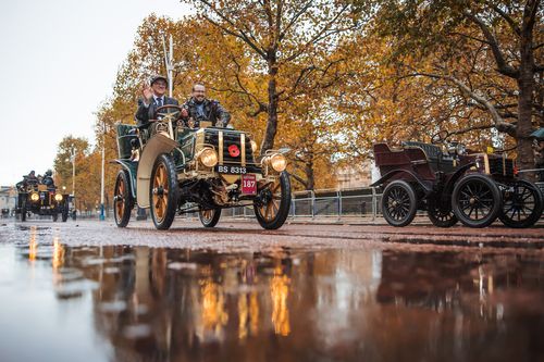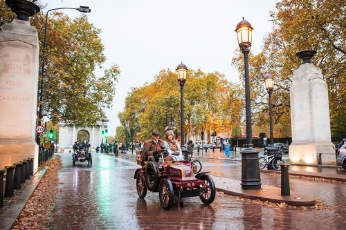 To honour this milestone, the red flag was torn up by racing driver and broadcaster Alex Brundle and presenter Charlotte Vowden, who had the privilege of leading the field away from Hyde Park driving a very special 1899 Wolseley 3.5hp Voiturette.